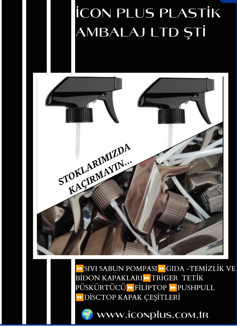 🌍🇹🇷İCON PLUS PLASTİK AMBALAJ LTD ŞTİ ☎️0342 503 35 41 ☎️+90 553 332 37 22 WHATSAPP DAN ADRES TLF GÖNDERİRSENİZ .ANLAŞMALI KARGO FİRMANIZDAN İSTEĞİNİZE GÖRE NUMUNE GÖNDEREBİLİRİZ. 📌SIVI SABUN POMPASI📌GIDA -TEMİZLİK VE BİDON KAPAKLARI📌TRİGER TETİK PÜSKÜRTÜCÜ📌FİLİPTOP 📌PUSHPULL 📌DİSCTOP KAPAK ÇEŞİTLERİ 🌍 www.iconplus.com.tr -